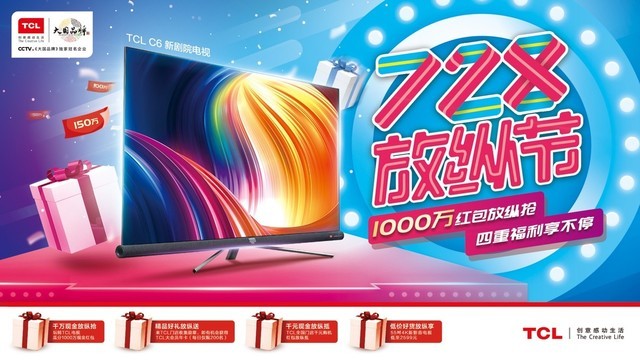 據了解,TCL電視728放縱節共包含四大福利,分別是:"千萬現金放縱搶、精品好禮放縱送、劇院電視放縱禮、低價好貨放縱享。"