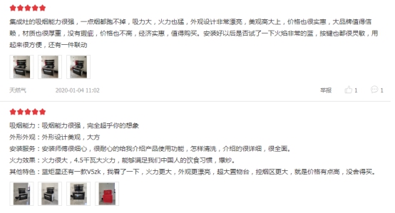 電商店鋪與實體門店不同,它的口碑擴散以及質量查驗很大程度上依賴于評論區和買家秀的售后反饋。消費者瀏覽產品時可以直觀看見其余買家對產品的使用評價,通過閱覽藍炬星集成灶的實景操作圖等信息,消費者可以進行價值判斷,更好地抉擇。