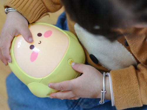 而開關(guān)則是放在蛋的腳下。對(duì)孩子來講很容易上手,不同于其他產(chǎn)品的按鍵式開關(guān),能有效防止孩子誤觸以及反復(fù)操作耗電。