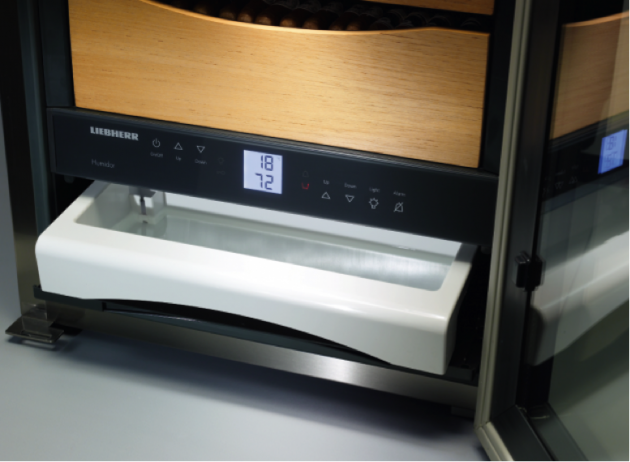 除了制造與原產地類似的溫濕度環境外,LIEBHERR利勃海爾雪茄柜還有許多人性化的細節設計。雪茄柜內部的擱架都是由西班牙雪松木精制而成,能夠均勻吸收和釋放濕氣,實現柜內理想的儲存條件;內部的活性碳過濾器,則保證內部空氣始終清新無異味。而且,柜內的所有木制部件均可拆卸并單獨清洗,雪茄柜和水盒內的塑料部分方便擦拭清理。更值得一提的是,LIEBHERR利勃海爾雪茄柜的溫度和濕度可從柜外讀取,無需頻繁打開門影響內部環境,減少了袍子等污染物進入柜子的機會,確保了雪茄的品質安全。