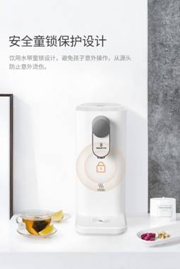 而且為了防止誤觸被熱水燙到,它設(shè)置了一個(gè)“童鎖鍵”,不提前解鎖是無(wú)法出熱水的,特別人性化。