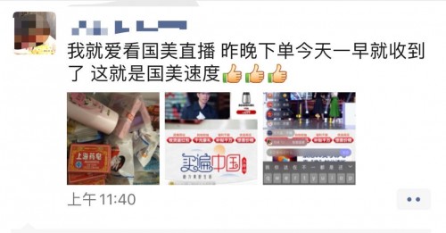“晚上10點看直播下的單,第二天一大早就收到了貨。”朋友圈被這樣的評論刷了屏,點開圖片看了看,有大白兔奶糖、立豐香酥豬肉松、立豐午餐肉、美加凈旅行套裝等等,看著看著居然看餓了……