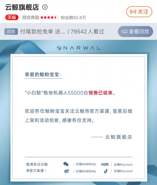 云鯨是洗地機(jī)新品牌,去年天貓雙11才首次上新。今年雙11,剛剛到11月4日,云鯨的天貓旗艦店所有產(chǎn)品就被預(yù)定完畢。添可的成績(jī)也讓人驚艷——科沃斯創(chuàng)始人錢(qián)東奇在朋友圈感嘆旗下新品牌“添可”的爆發(fā):“36分鐘單店過(guò)億了,去年整個(gè)雙11全網(wǎng)才650萬(wàn)。這是火箭速度!”