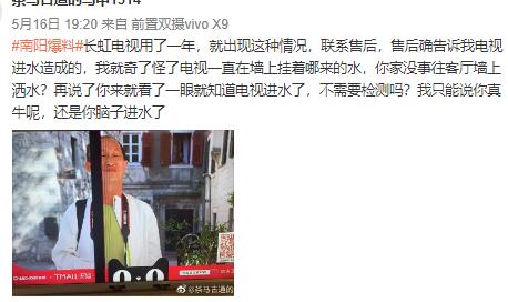 還有網友投訴稱,購買的長虹電視基本不看,沒用多久,壞了。因為過了維修期,維修要自費至少四五百,“看了微博好多人都在罵長虹質量,說是維修了還是容易壞,現在處于尷尬的的狀態,到底修還是不修呢、才買了一年半,我覺得他們存在賺維修費用的嫌疑。”