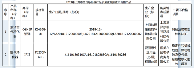 上海質監局:浩澤、IRIS品牌空氣凈化器不合格