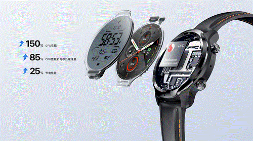對比驍龍 3100 可穿戴設備平臺,新品的 CPU 性能和內存處理速度提升高達 85%,GPU 提升 150%,功耗降低 25%。內置 1G RAM+8G ROM 的內存容量。