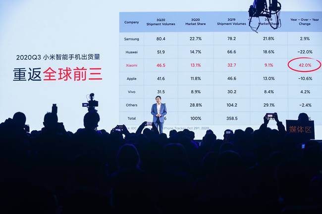 小米手機重回全球銷售第三 雷軍:死磕硬核技術