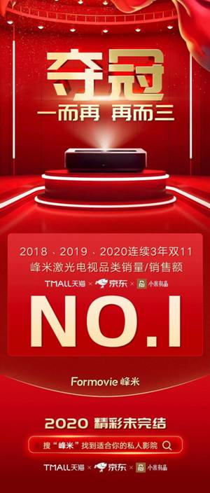 激光電視品類持續(xù)增長!峰米獲雙11激光電視銷售三連冠達成!