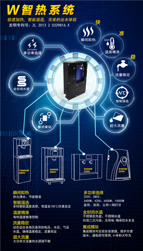 智熱系統(tǒng):即開、即飲,大流量、大功率,秒殺傳統(tǒng)飲水技術(shù)