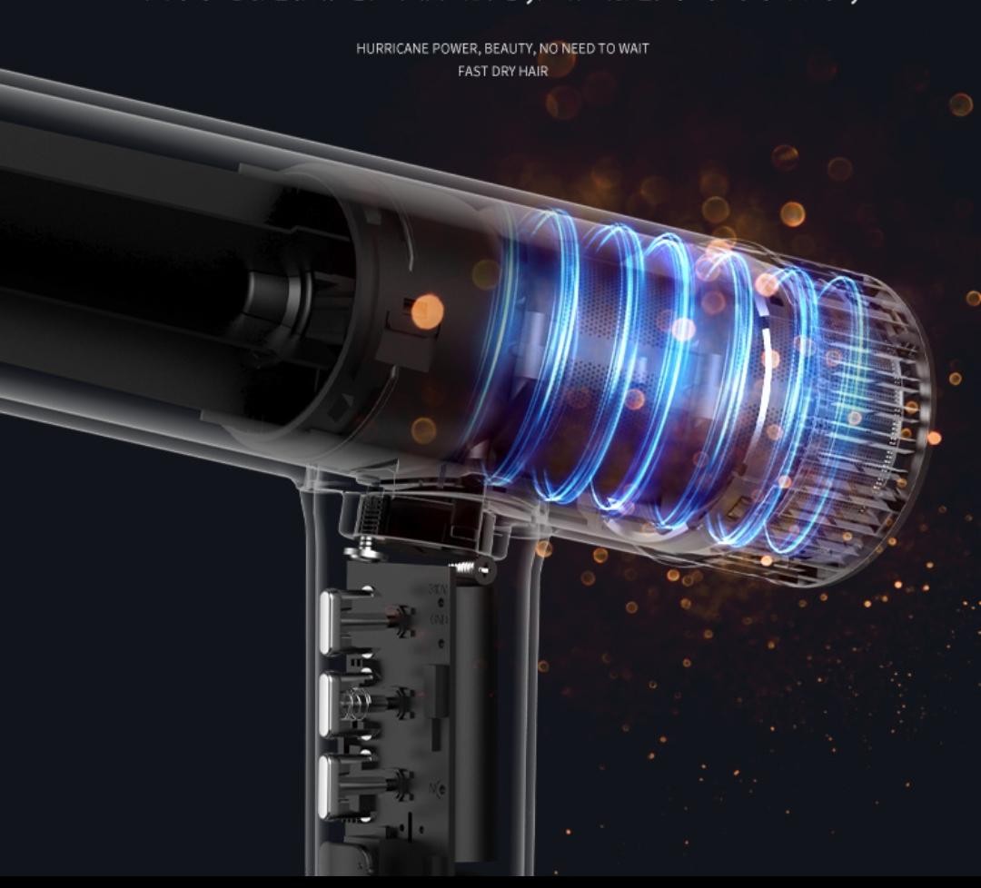 吹風機的主要工作原理是利用風速+高溫來實現快速干發的,除去電熱絲的加熱功能,本質上跟電風扇沒什么區別。那么在選擇一臺高效率的吹風機時,對功率和電機的選擇就必不可少。