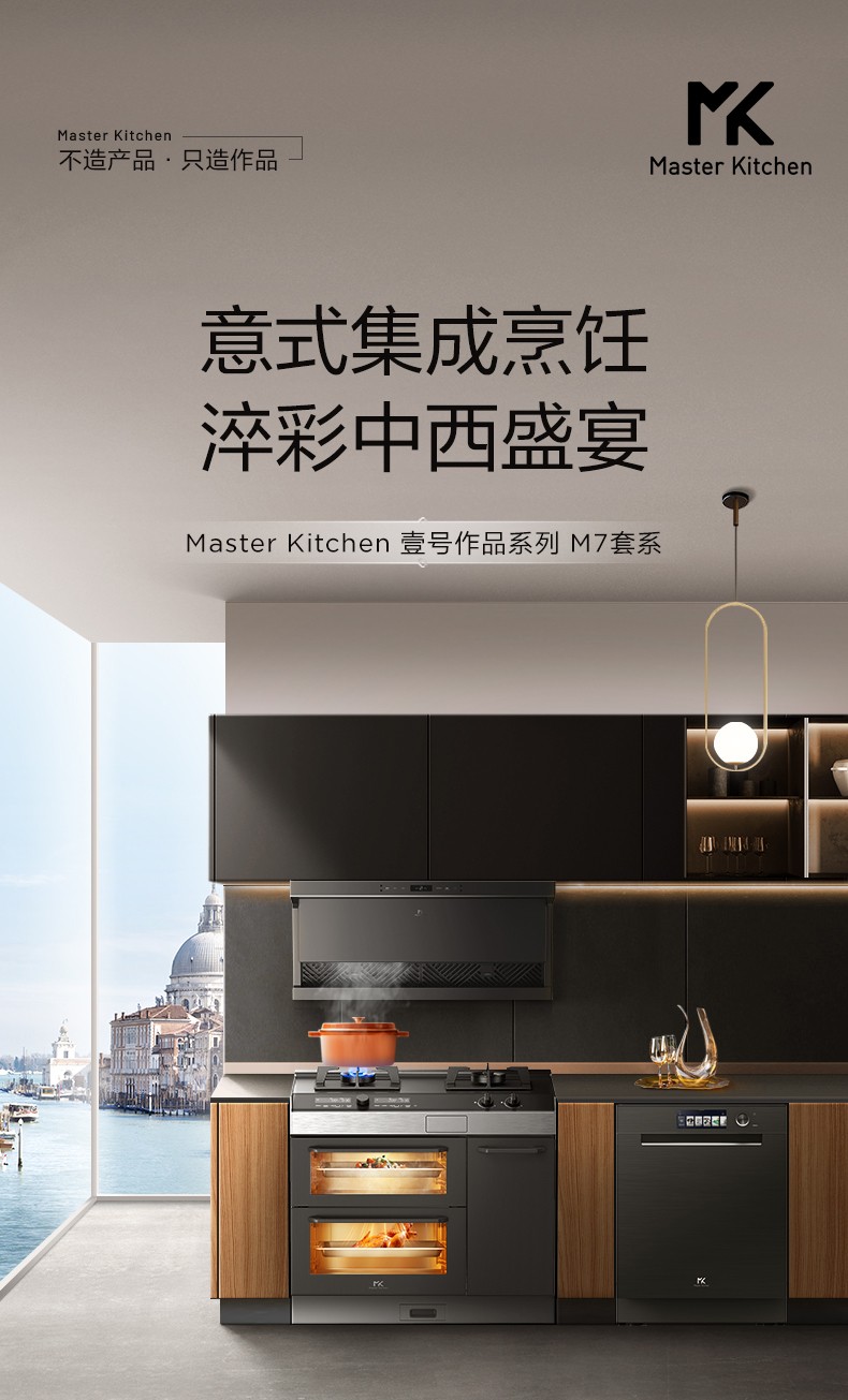 在設(shè)計上MK以意大利經(jīng)典設(shè)計為靈感,將整廚設(shè)計聚焦于前沿的廚房與室內(nèi)設(shè)計色彩、材料及工藝趨勢,運用木材、巖板、大理石和玻璃等具有紋理質(zhì)地的自然材料,精工鍛造高端的整廚作品——MK壹號作品系列M7套系,用藝術(shù)化升級多變的廚間體驗。