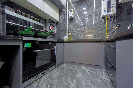 在前兩次新房裝修中,劉女士使用的都是傳統油煙機,深受油煙之苦,即使嘗試簡單的輕奢風裝修也很快會被破壞。廚房墻壁、煙機內部都沾滿油漬,極其難清洗。而這次的新家裝修,選擇了森歌集成灶,以往廚房中存在的種種問題都迎刃而解,效果立竿見影。