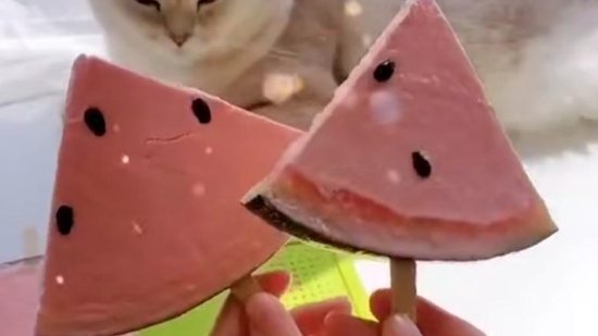 西瓜+牛奶,用摩飛氣泡果汁杯榨成汁;然后再與打發的淡奶油混合均勻,倒入準備好的圓圈,冷凍4小時后,造型可愛的西瓜雪糕就出爐啦!