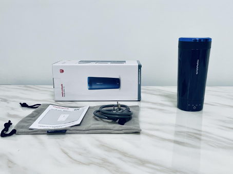 我購入的這一款摩飛燒水杯是寶石藍配色,受眾以男性為主。摩飛燒水杯的標配有燒水杯主機、電源線、絨布收納袋。