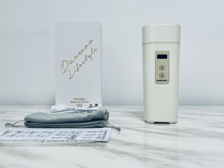 最后出場的選手就是來自大宇的燒水壺。與前三款便攜式燒水杯不同,它更像是家用燒水壺的便攜版。配置方面依然是燒水杯的標配:燒水壺主機、電源線、絨布收納袋。