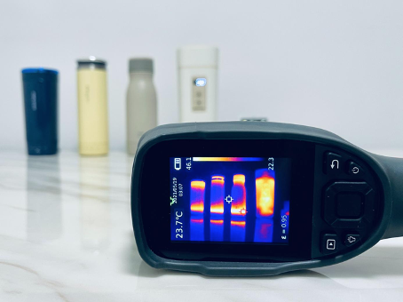 五個小時基本快到了最佳保溫性能的臨界點了。熱成像儀掃了一下,看出跟剛才的測溫結果區別不是很大,三款保溫杯的水溫依舊比大宇理想。