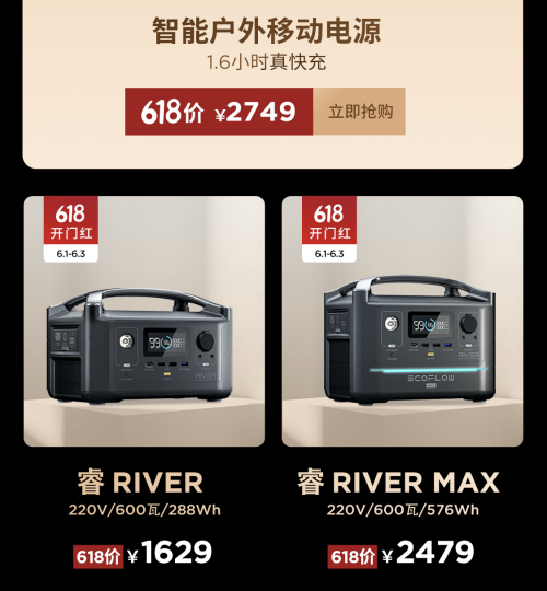 EcoFlow正浩品牌下有很多產品,其中最經典也最受消費者喜愛的就是RIVER Pro和DELTA這兩款了,而在618期間這兩款產品正是目前最好的入手時機。原價3699元的 RIVER Pro,618直降950元,只需要2749元,需要的伙伴這次真的可以入手了。