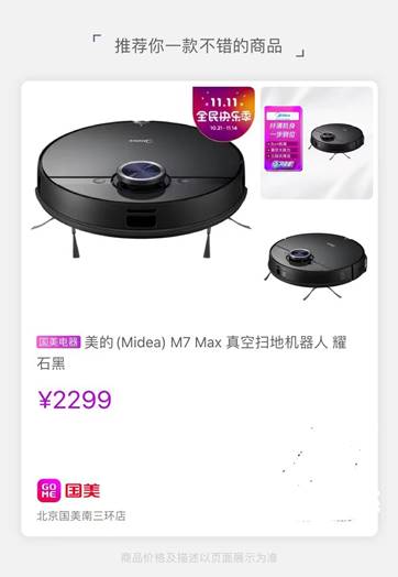 同時,北京國美還有眾多大牌生活小家電享實惠低價。比如這款稍低機器人美的M7 Max,真空掃地,這是一款非常有科技感的掃地機器人,第五代LDS激光導航智慧建圖,可以更精準的規劃全屋地圖,這樣我就不用再去檢查角落會不會漏掃漏擦。不僅如此,它還可以全方位感知復雜環境,遇到有臺階的地方馬上調頭,反應非常靈敏。它在精準識別障礙物同時,也可以智能沿邊清掃,特別注重小細節。