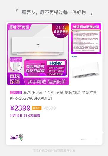 值得一提的是,海爾將聯合國美推出“智趣潮生活”,爆品直降至高減1200元。在海爾套購方面,套購滿額送家電延保卡或家電清洗卡,還有筆記本、掃地機器人、羊毛被、空氣炸鍋、掛燙機、果汁機等禮品滿額就送。