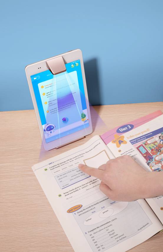 其次是A.I.指學(xué)助手,配合AI指讀鏡,進(jìn)入指讀模式,利用指尖定位、圖像識別、OCR識別和語音識別等人工智能技術(shù),不僅可以在學(xué)習(xí)機(jī)完成課本點讀、口語評測、翻譯查詞等功能,還能馬上評分,大幅度提升孩子自主學(xué)習(xí)效率。
