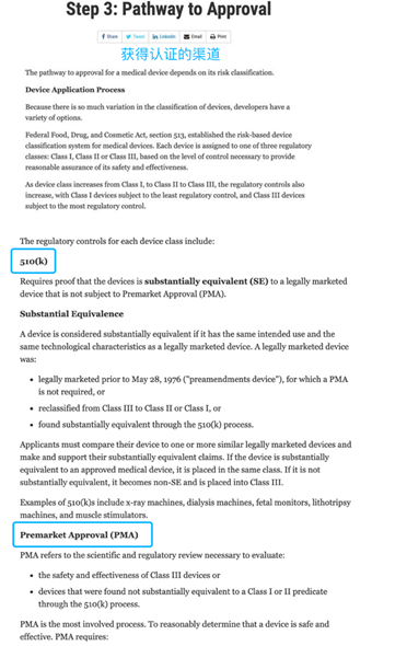 據(jù)了解,美國FDA官網(wǎng)對于FDA認(rèn)證的介紹顯示,醫(yī)療器械獲得FDA認(rèn)證僅有兩個流程,分別是510(k)和PMA。510(k)流程獲得的FDA Cleared,與PMA流程獲得的FDA Approved均屬于FDA Approval。在專業(yè)的行業(yè)內(nèi),一般都翻譯為“FDA認(rèn)證”。