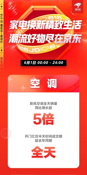 京東618首日空調銷售:新風空調全天銷量同比增5倍