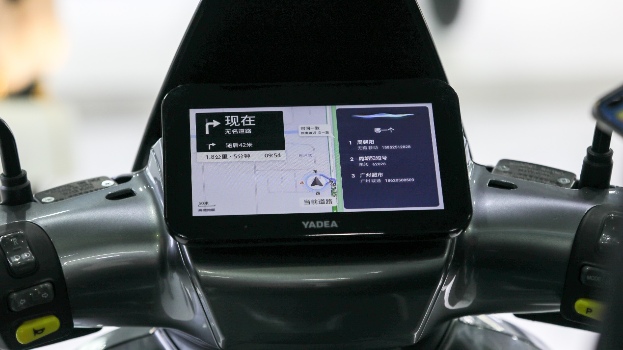 其中,最值得稱道的還要屬雅迪冠智2.0系列加入的智能導航功能。據了解,目前多數電動車搭配的大屏幕主要還是用于顯示車輛信息,而雅迪冠智2.0系列搭配的全場景生態觸控屏,不僅內置高德地圖,可以實現GPS+北斗+基站的精準定位,支持4G、藍牙、WIFI等多種通訊方式,可以同步手機通訊錄直接撥打或接聽電話。通過全場景AI語音交互,消費者可以在雅迪冠智2.0系列上隨時呼叫語音助手,通過語音實現打開導航、電話、影音控制、燈光控制等一系列操作。