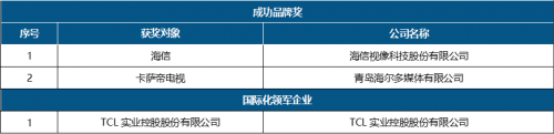 成功品牌獎針對我國電視產業生態中綜合評價較高的品牌企業進行表彰;國際化領軍企業旨在對電視產業鏈上下游企業和品牌在國際化領域享有優質聲譽、良好口碑的領軍企業進行鼓勵與表彰,獲得本屆盛典成功品牌和國際化領軍企業的是:
