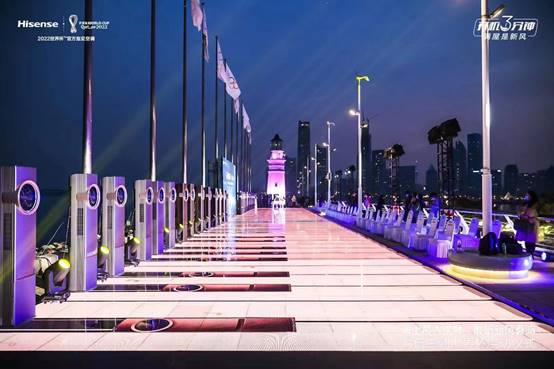 在青島的蜿蜒海岸線上,許多市民被燈光秀吸引,加入到激情歡暢的行列。青島市政府領(lǐng)導(dǎo)和各界嘉賓做客現(xiàn)場,與全網(wǎng)直播觀眾一起開啟足球激情。足壇名宿——金頂老茂宿茂臻與各位足球小將一起進(jìn)行足球表演,宣告著世界杯激情即將到來,也為青島的濱海增添球場綠茵的色彩。在綠茵環(huán)繞中清新油然而生,海信新風(fēng)空調(diào)正式開啟世界杯征程,也正式宣布城市更新計(jì)劃,為全球億萬家庭喚醒足球賽事激情與健康生命澎湃。
