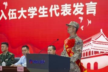 2021屆大學生劉英豪作為新兵代表發言。2019年,他成為了一名光榮的共產黨員,2021年,他成為了格力電器一名新員工,2022年,他成為了一名光榮的軍人。劉英豪堅定地表示:“我是黨員我先上,我是軍人我先上。”他必將刻苦訓練、嚴守紀律、服從管理、團結同志,為國防事業添磚加瓦。