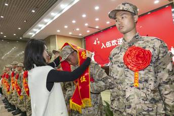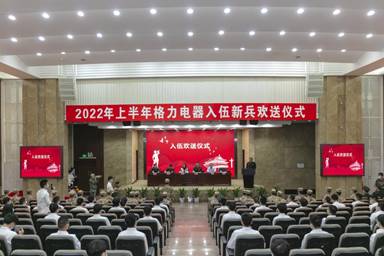 格力電器歷來有擁軍報國的光榮傳統。2019年至今,格力電器積極選送51名優秀員工入伍參軍,有多人在服兵役期間被評為“四有”優秀士兵。歡送儀式上,退伍老兵帶領入伍新兵宣讀入伍誓詞,全體入伍新兵面向軍旗集體宣誓,表達從軍入伍、保家衛國的決心,這也標志著新兵正式從老兵手中接過接力棒,繼續書寫格力士兵的軍旅榮光。