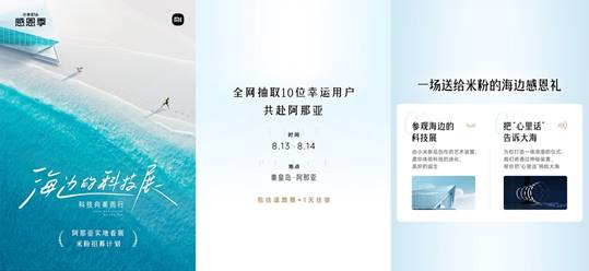 回溯過(guò)去的12年,小米持續(xù)打造高品質(zhì)的品牌體驗(yàn),不斷贏得了廣大消費(fèi)者信任,并在滿足消費(fèi)者智能生活體驗(yàn)上奮力前行,不斷用科技改變生活。此次816感恩季,小米還推出了一場(chǎng)特別企劃。小米在理想生活的發(fā)生地——阿那亞,特別打造了一場(chǎng)「海邊的科技展」。據(jù)了解,這場(chǎng)展覽將由小米新品創(chuàng)作的藝術(shù)裝置,帶你體驗(yàn)科技的進(jìn)化,同時(shí)消費(fèi)者還可通過(guò)一個(gè)神秘裝置將心里話捎給大海,充分享受這一場(chǎng)科技浪漫之旅。