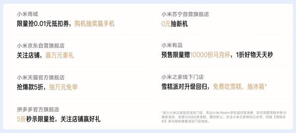 此次小米816感恩季,小米旨在將其打造為全平臺(tái)購(gòu)物狂歡,為消費(fèi)者提供便捷式購(gòu)物體驗(yàn)。據(jù)悉,小米商城、京東、天貓、拼多多、蘇寧等平臺(tái),設(shè)置了0元抽新機(jī)及萬(wàn)元免單等活動(dòng)。其中各平臺(tái)直播間,也有諸多實(shí)力寵粉福利,例如下單抽免單、百億補(bǔ)貼、爆品好物1元秒等。值得注意的是,此前備受好評(píng)的小米之家雪糕派對(duì)也將升級(jí)回歸,活動(dòng)將覆蓋更多省市門(mén)店,邀請(qǐng)消費(fèi)者免費(fèi)吃雪糕、抽冰箱,在炎炎夏日為米粉送來(lái)一抹清涼。