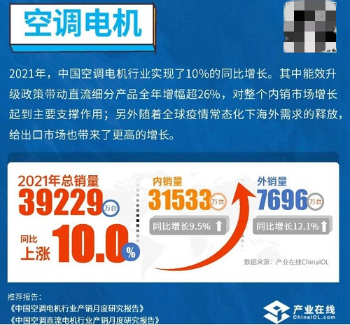 家電消費網3月3日訊 昨天,大數據公司產業在線發布的統計數據顯示,2021年,我國空調電機行業銷售實現了10%的同比增長。