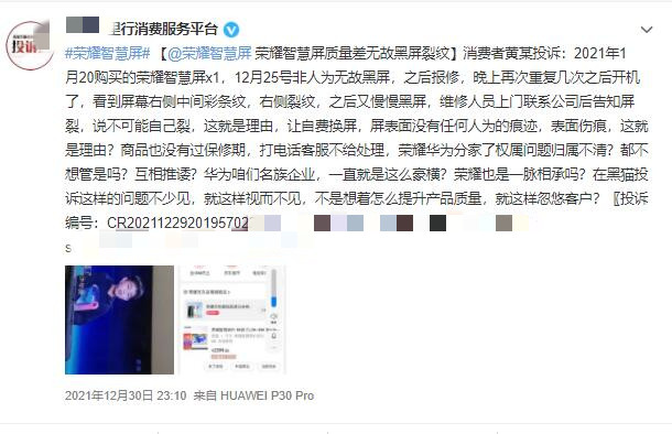 榮耀智慧屏屢遭質(zhì)量投訴 售后維權(quán)難倒消費(fèi)者