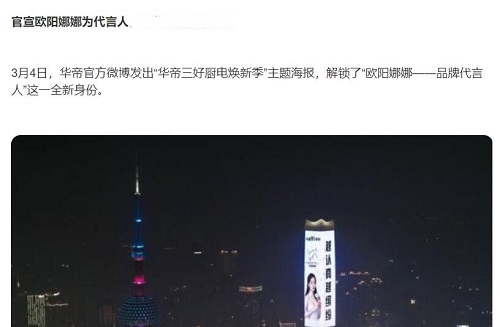 華帝啟用歐陽娜娜代言 分析:沒有產品力 換明星也賣不動