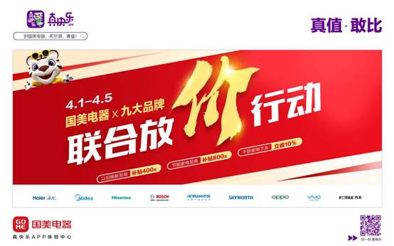 此次活動由中消協、扶貧辦、中商聯以及各地區商務局主辦,國美電器承辦,并配合各類總工會、街道辦、政企、國企、行業協會輔助執行。在4月1日至4月5日,由國美電器聯合海爾開展的“放價”行動,以舊換新至高補貼400元,節能家電至高補貼800元,千款家電下鄉立省10%。同時,真快樂APP和國美電器線上線下聯動為消費者提供貼心服務,用戶可以到國美電器線下門店現場體驗選購,也可上真快樂APP便捷選購,所有支付都可在真快樂APP快捷實現。