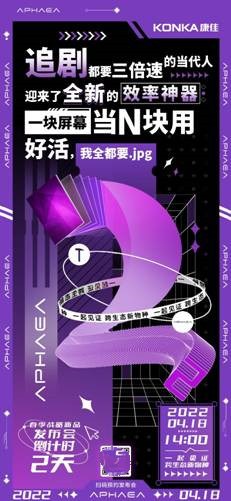 家電消費網4月16日訊 “一塊屏,還能當N塊用!?”這是今天康佳電視為4月18日即將發布的康佳APHAEA春季電視新品放出的新倒計時海報。