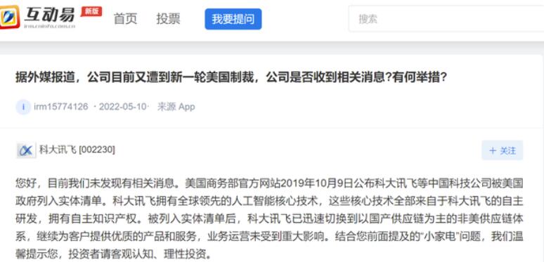 科大訊飛:未發(fā)現(xiàn)美國新一輪制裁相關(guān)消息 業(yè)務(wù)未受到影響