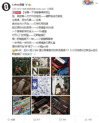 家電消費網5月18日訊 今天,洛斐在2022春季新品發布會上了,發布了1%鍵盤、小浪鍵盤-時光版、小翹鍵帽套裝、小翹pro版、半滿鍵盤文具禮盒、見野融蠟燈、遍野組合式背包、打字機號碼牌等新品。