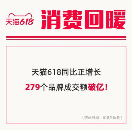 天貓618近300個品牌成交過億 超10萬中小賣家增速超100%