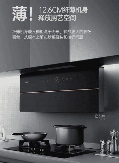 盡管油煙機(jī)廠家近年來(lái)一直努力改變煙機(jī)笨重的外觀,但是華帝超薄近吸雙腔油煙機(jī)將行業(yè)內(nèi)15厘米超薄標(biāo)準(zhǔn)下探至12.6cm,如此超薄,還是出乎筆者意外。不僅秀氣,不占地,還充滿濃濃的高科技感。看來(lái),華帝股份承諾今年要做好用、好看、好清潔的三好廚電,是有這款產(chǎn)品做支撐而來(lái)。
