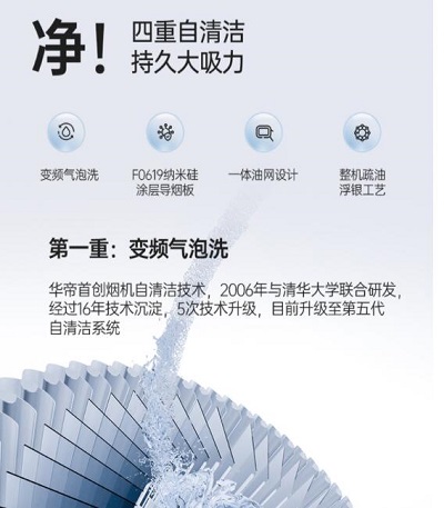 自清潔也是筆者很關(guān)注的一個(gè)功能,它宛如一個(gè)清潔小助手,可以減少人們?nèi)粘4罾碛蜔煓C(jī)的時(shí)間。華帝這款煙機(jī)的自清潔系統(tǒng)還在實(shí)現(xiàn)自清潔的同時(shí)能抑菌降噪、祛除異味。