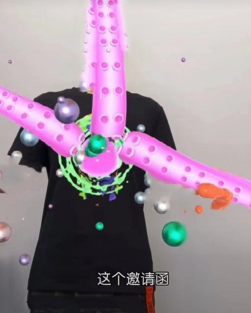看似普通的黑色T恤,正面印有一個彩色的人頭像,背面有 Nreal 的標志。不過,用手機掃描 恤下方的二維碼,然后將攝像頭對準彩色人頭像,就可以看到這件T恤出現了章魚爪,很是炫酷。