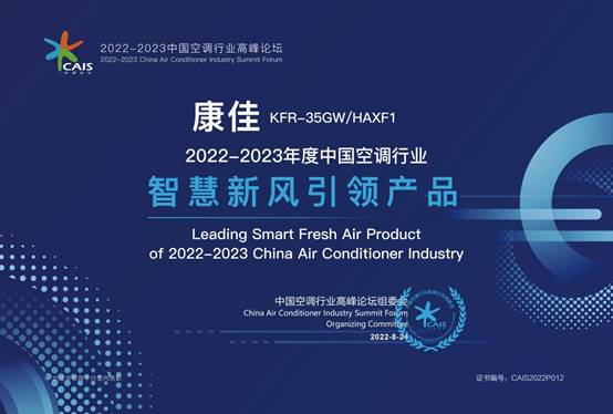 如此次摘得“智慧新風(fēng)引領(lǐng)產(chǎn)品”獎(jiǎng)的KFR-35GW/HAXF1新風(fēng)空調(diào)就是一大成果。這款新風(fēng)空調(diào)搭載雙驅(qū)動(dòng)混合新風(fēng)系統(tǒng),采用微正壓換新風(fēng)技術(shù),可以實(shí)現(xiàn)60m³/h的大新風(fēng)量輸送,只要30分鐘就可以完成一次室內(nèi)的換氣,即使門(mén)窗緊閉,也可以呼吸到新鮮空氣。與此同時(shí),康佳智慧新風(fēng)空調(diào)匹配自身專利的智慧柔風(fēng)技術(shù),通過(guò)人魚(yú)尾“嘭彈”柔風(fēng)葉片與波爾卡矩陣圓點(diǎn)設(shè)計(jì)的內(nèi)擋風(fēng)板組成的柔風(fēng)系統(tǒng),將傳統(tǒng)空調(diào)渦動(dòng)硬風(fēng)打散,形成速度低、流動(dòng)平穩(wěn)的層流軟風(fēng),給予細(xì)膩無(wú)感的母嬰級(jí)柔風(fēng),大幅提升用戶舒適體驗(yàn)。