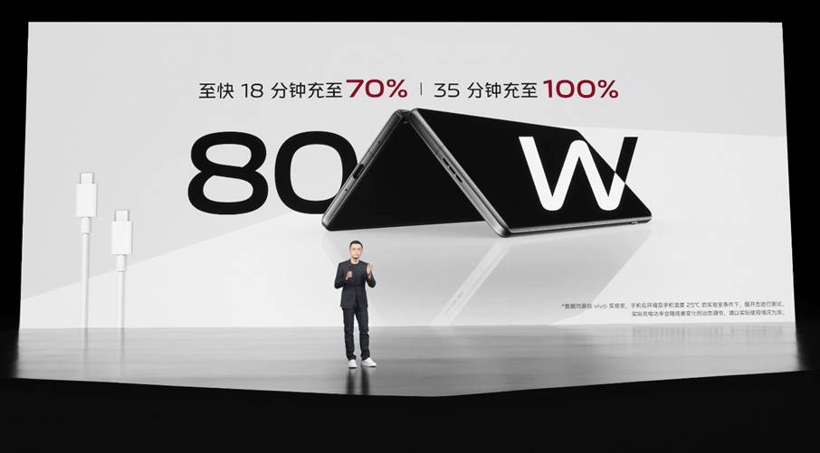 續航方面,在不增加機身體積和重量的前提下,vivo X Fold+的電池容量增加到了等效4730mAh*,整體續航提升超過20%。有線充電方面,vivo X Fold+搭載折疊屏首發80W雙電池閃充,至快18分鐘左右可以充至70%,至快35分鐘左右充電至100%。無線充電方面,50W無線充電至快4分鐘充至10%,至快53分鐘充至100%。此外,vivo X Fold+還標配PD雙Type-C插口氮化鎵充電器,能夠滿足多個電子設備的充電需求。