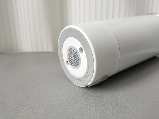 杯身底部有一個小巧圓形的LED觸摸顯溫屏,內(nèi)有感溫探針,斷電后也能顯示杯中水溫。用手一碰該顯示屏就實時顯示杯中水溫,可以快速知道水溫冷熱。這是讓筆者覺得蘇泊爾該款電熱水杯相比其它同類產(chǎn)品更智能的地方。