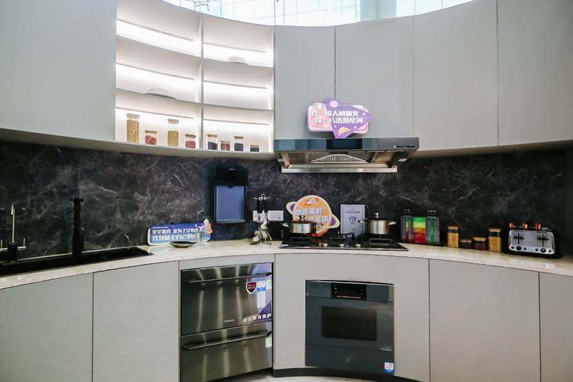 針對這些問題,三翼鳥廚房不斷突破產業和行業的界限,推出一站式智慧廚房場景解決方案,構建起“成套智慧”、“空間融合”、“1+N服務”3個差異化的能力。以現場展示的光年套系為例。首先,作為行業首套嵌入式白色廚房套系,通過成套電器實現了外觀一致,白里如一,并且基于智家大腦可以實現冰箱、烤箱、洗碗機等互聯實現便捷的烹飪體驗;其次,冰箱左右無閃縫,前后齊平,油煙機320毫米深度完全隱入吊柜,行業首創抽屜式洗碗機等完美實現了空間的融合;第三,通過“1+N服務能力”,實現一步到位,一次就好,用戶全流程只需對接一個人,就可實現量尺、設計,全流程可視化,服務可追溯,價格透明化。