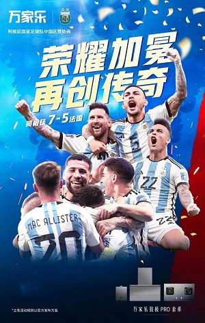 導讀:  家電消費網12月20日訊 12月18日晚23點,2022年卡塔爾世界杯迎來最后的巔峰對決,阿根廷對陣法國。最終阿根廷點球4-2戰勝法國,奪得大力神杯。這讓選擇與阿根廷國家隊攜手的我國知名廚電品牌萬家樂,成為