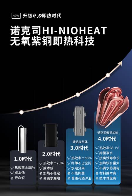諾克司“HI-Nioheat海立特”無氧紫銅核心發熱技術,引領即熱新時代!